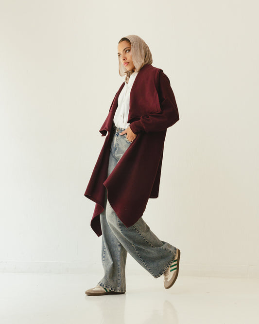 Cozy Flowy Reversible Cardigan Set in Burgundy ( Pre-Order)