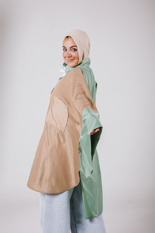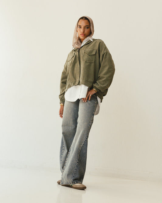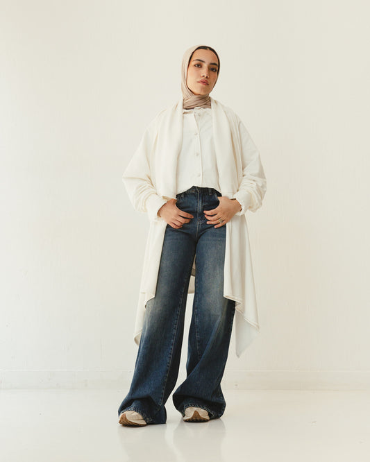 Long Stitches Cotton Melton Washed Cardigan in Beige