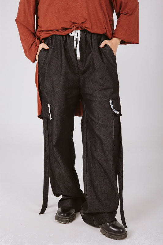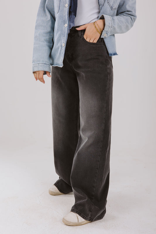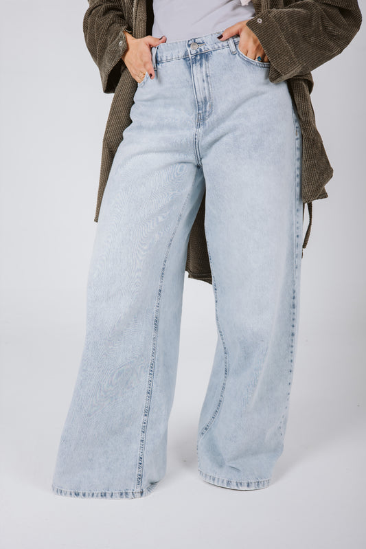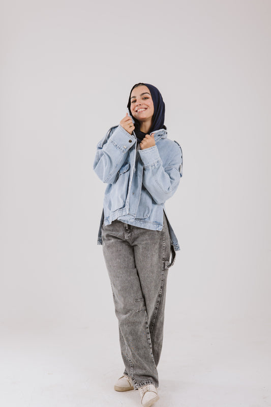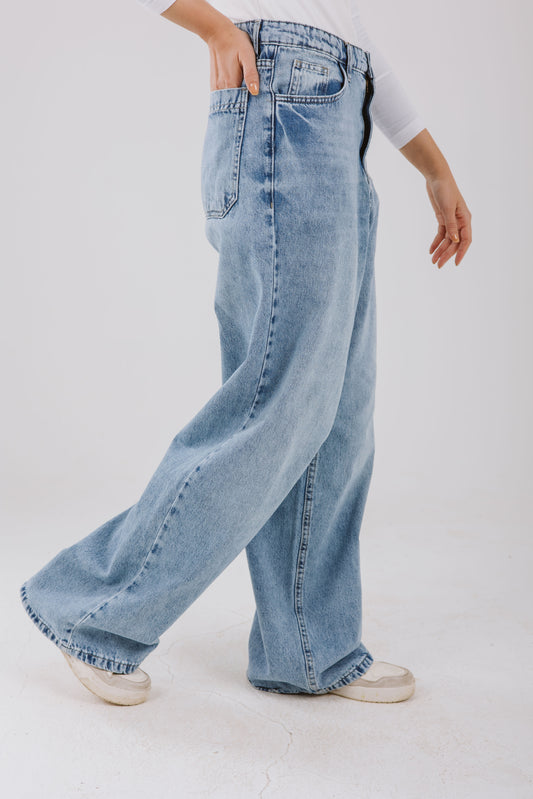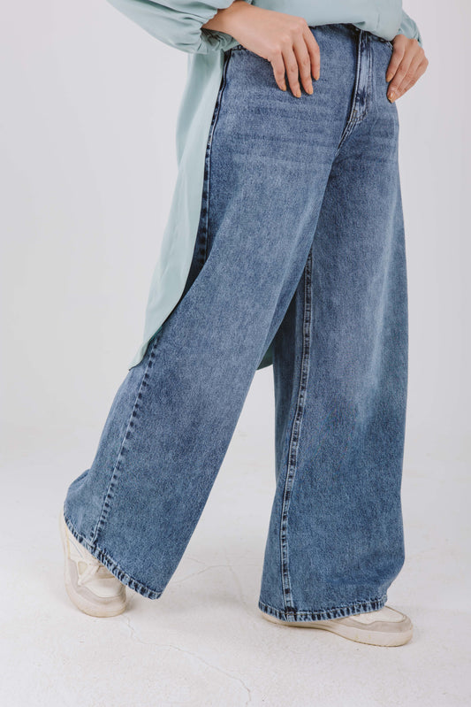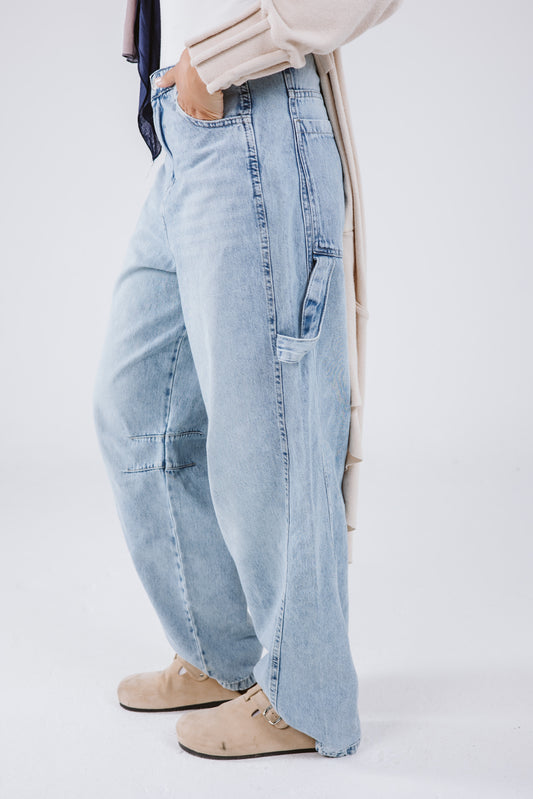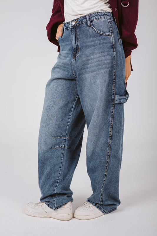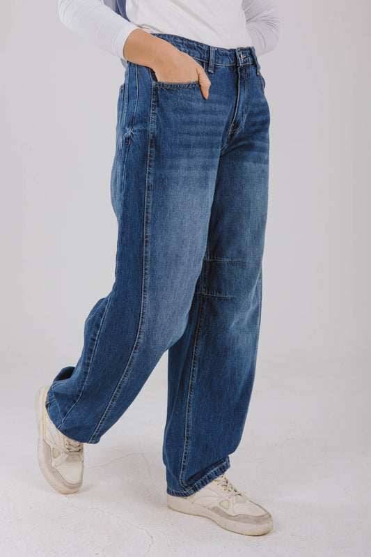 High Waist Balloon Denim Pants in Washed Dark Blue