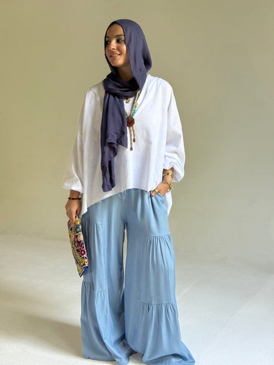 Seashell Breeze Wide-leg Pants in Baby Blue