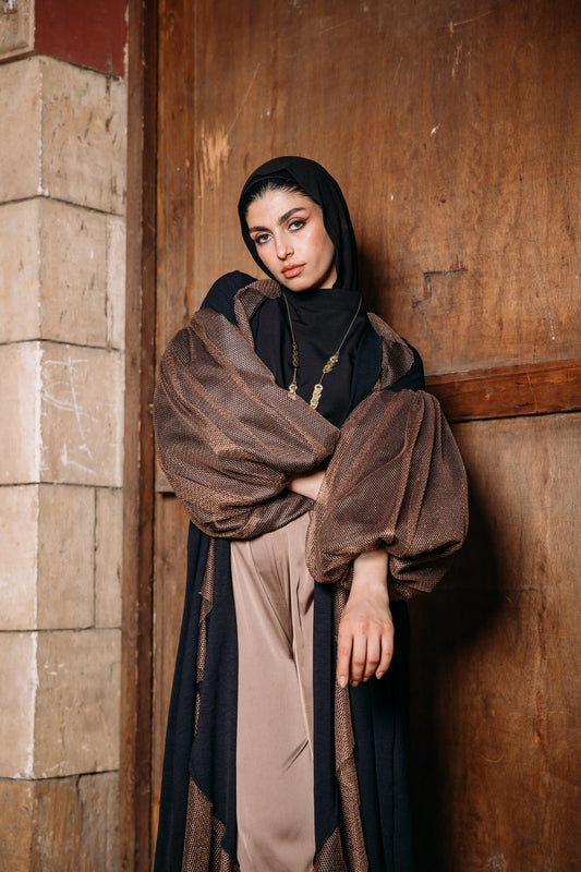 Net puffy sleeves ruffles kaftan in cafe