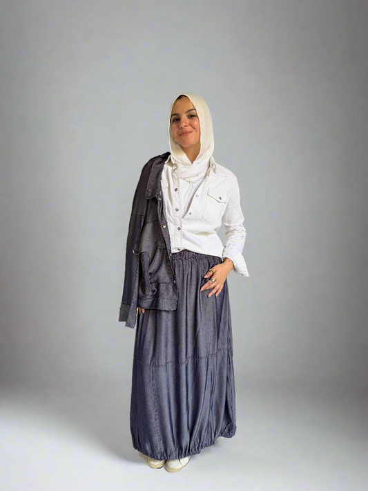 Parachute Skirt Set in Dark Blue Denim