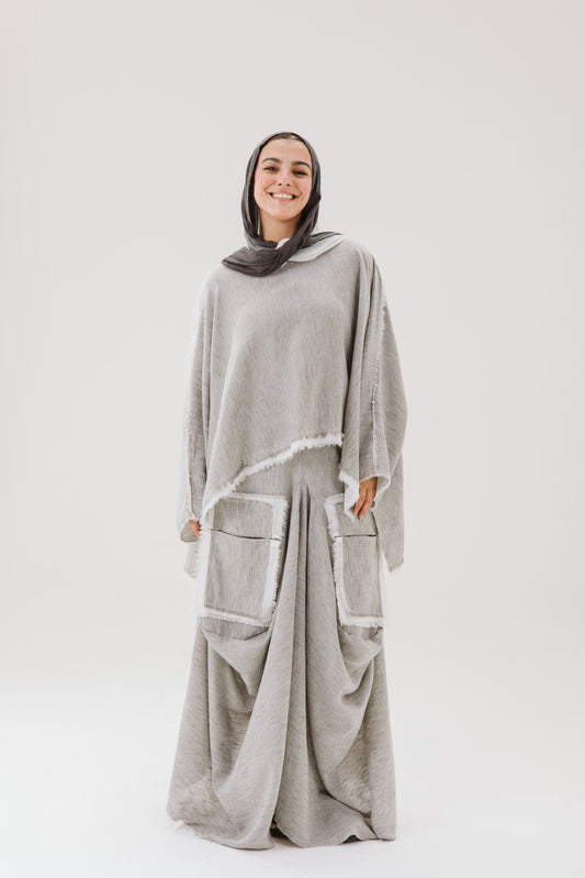 Linen Asymmetrical Pockets Skirt in Grey