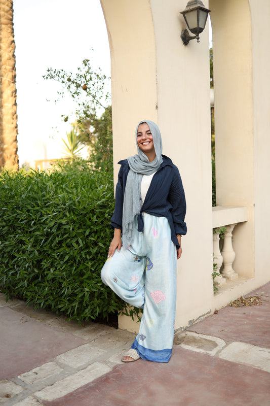 Seashell Breeze Wide-leg Pants in Navy Blue