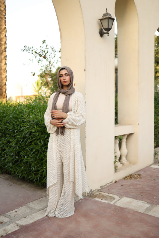 Knitted Cardigan Set in Beige