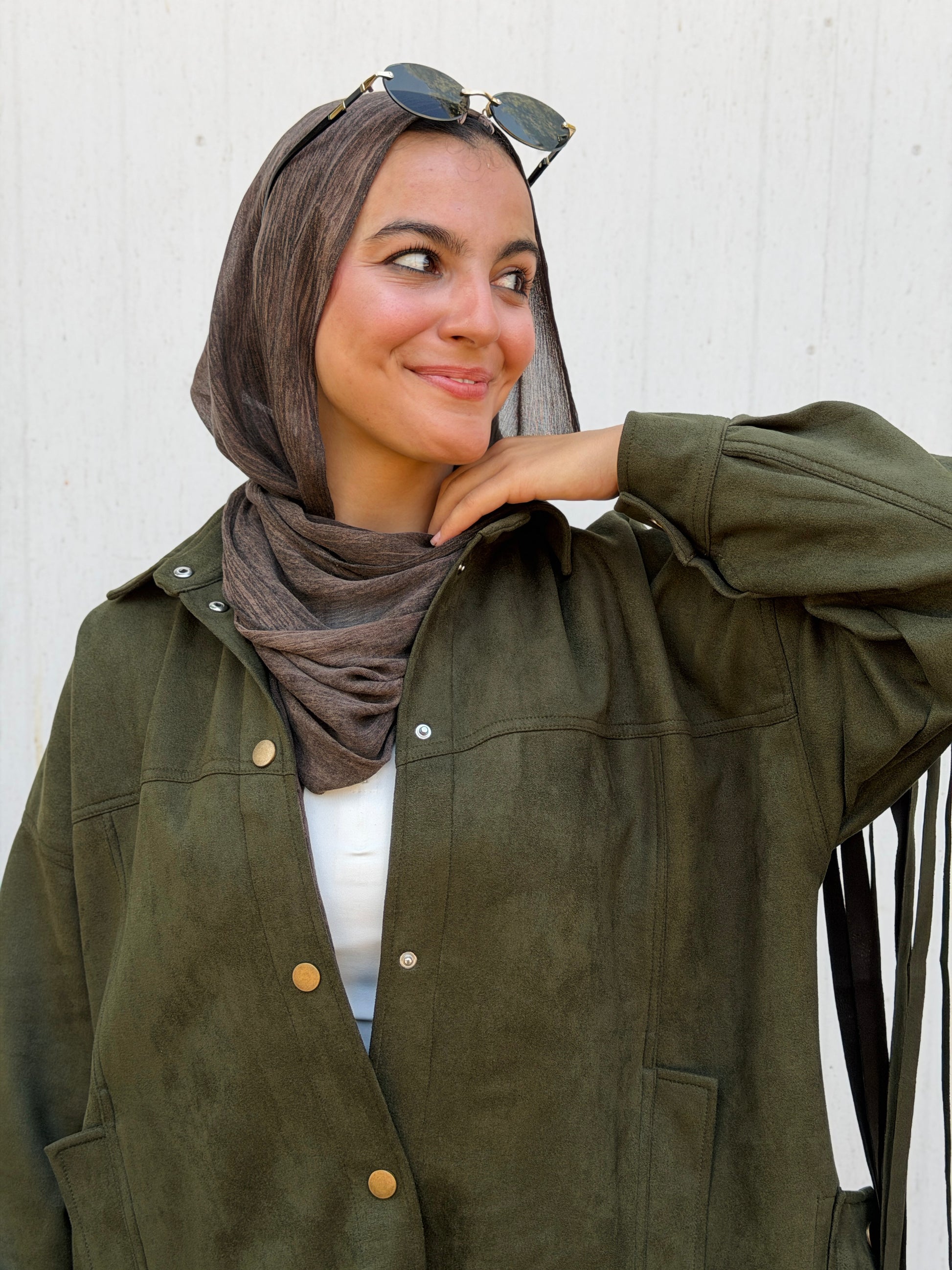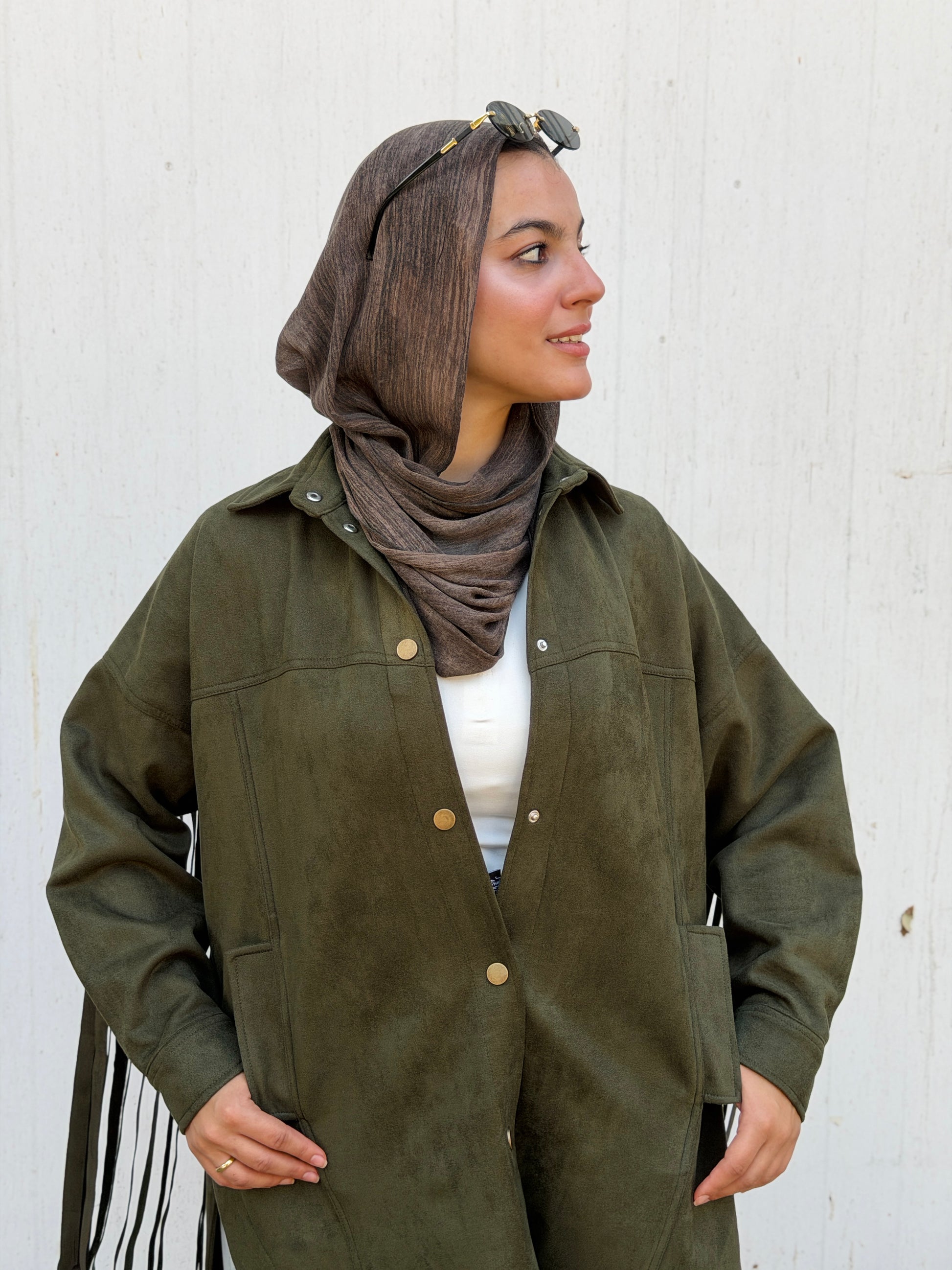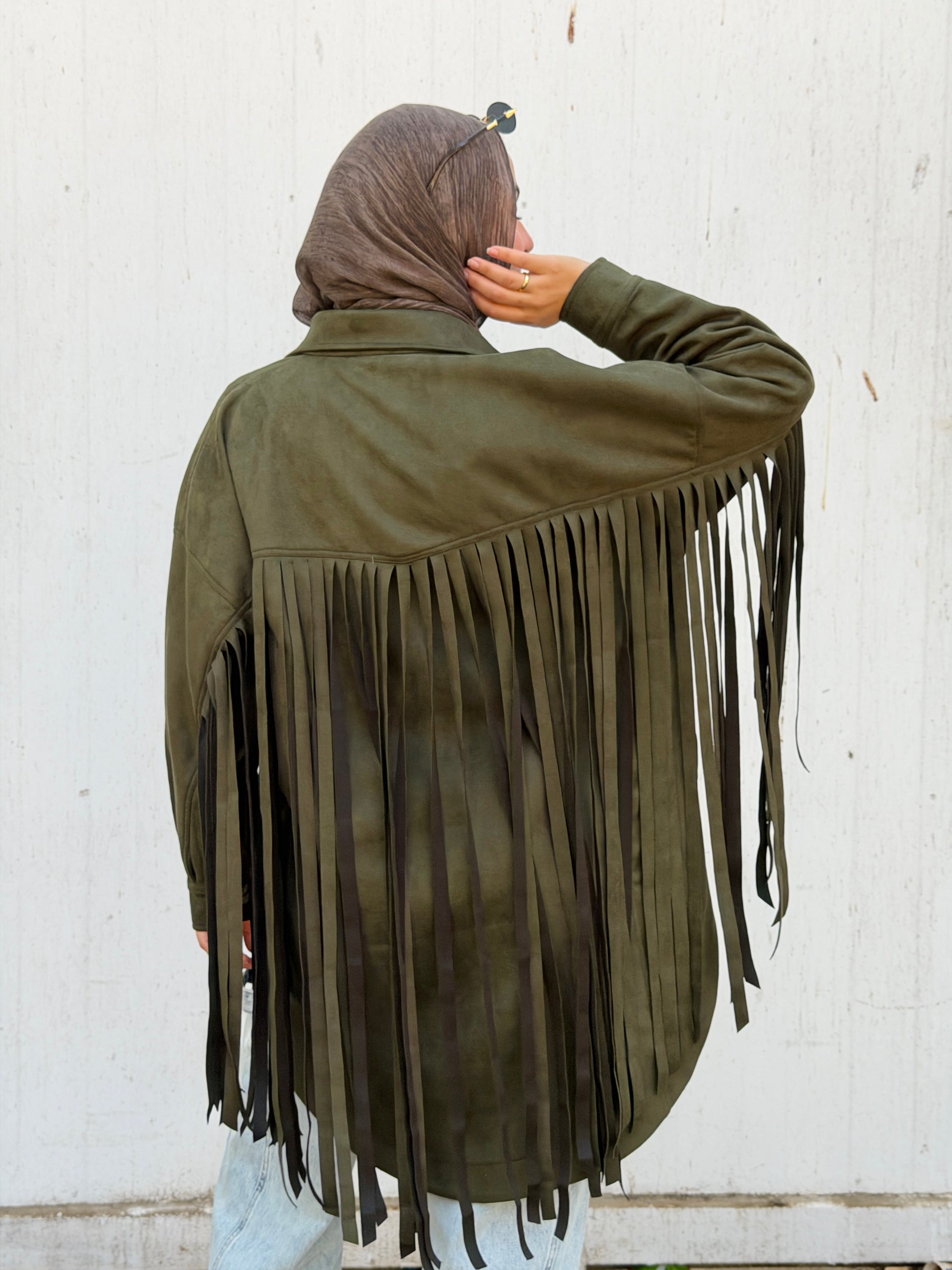 Back Fringes Suede Shirt in Olive