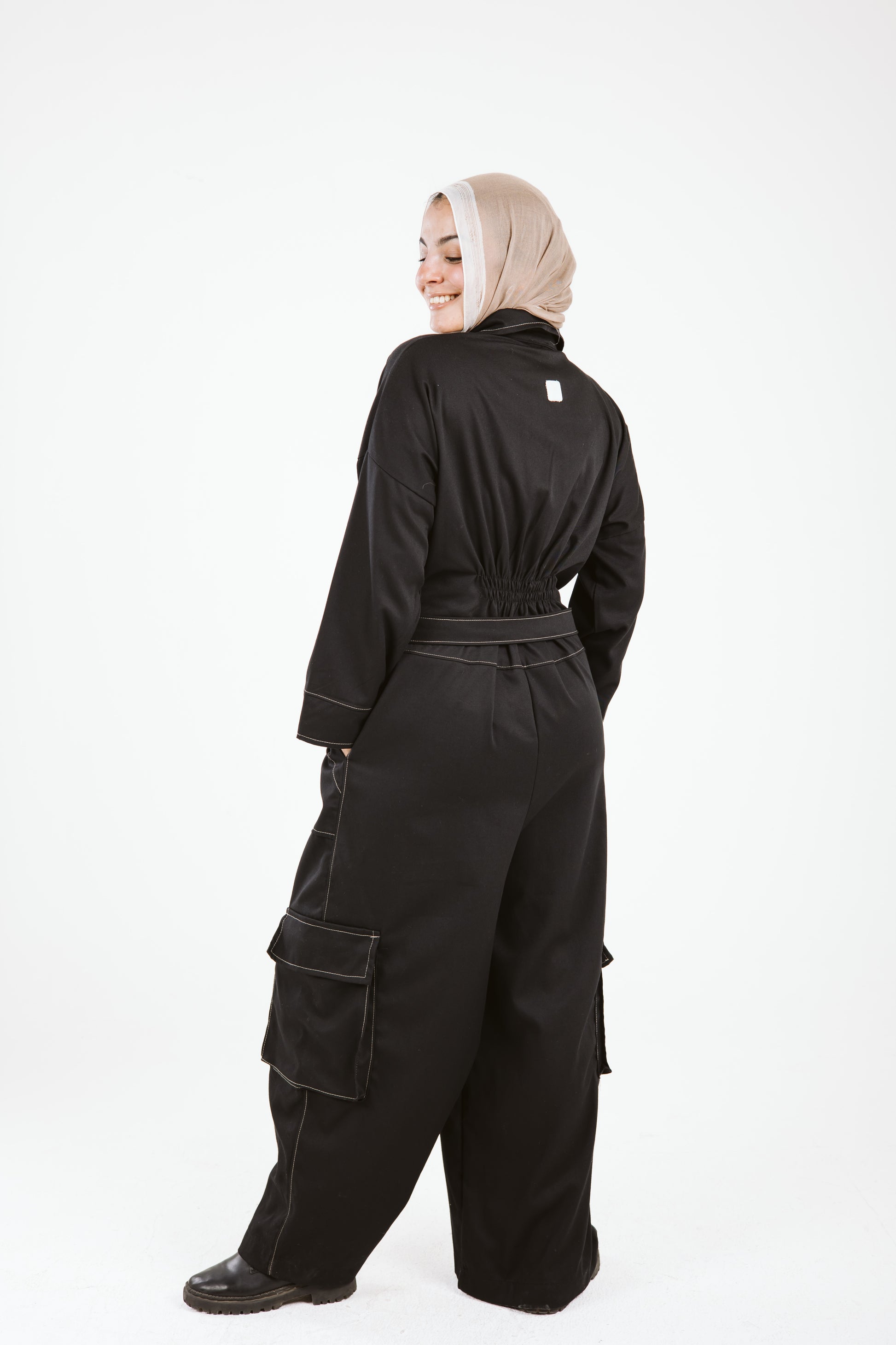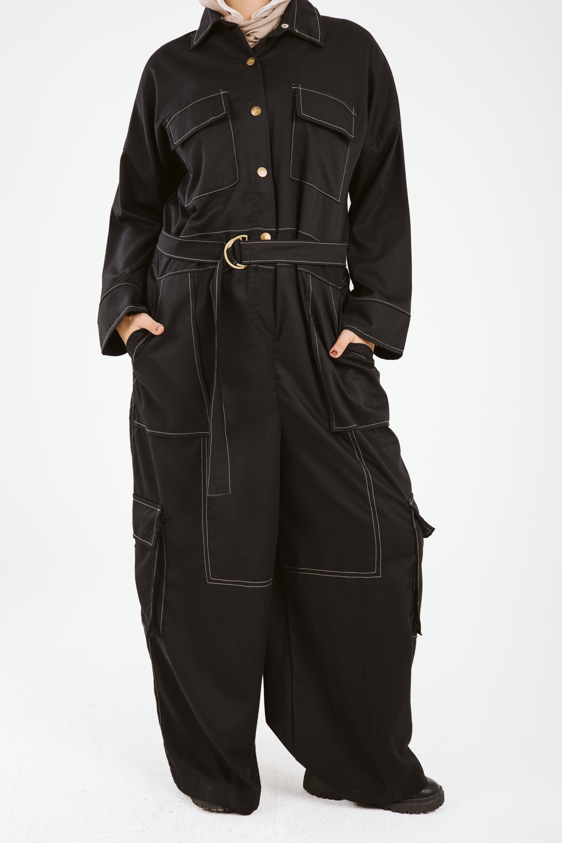 Belt Jumpsuit in Beige Stitches