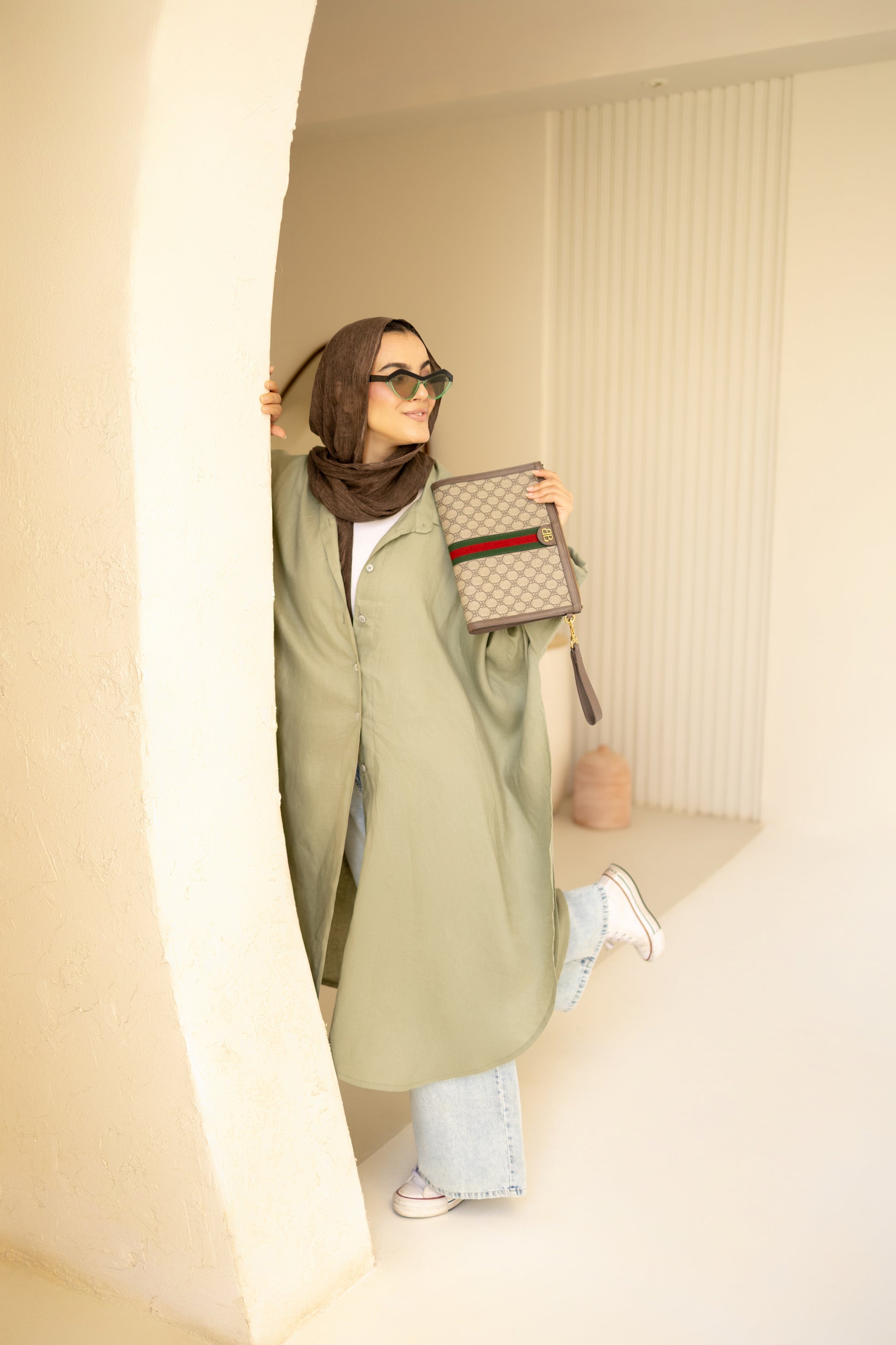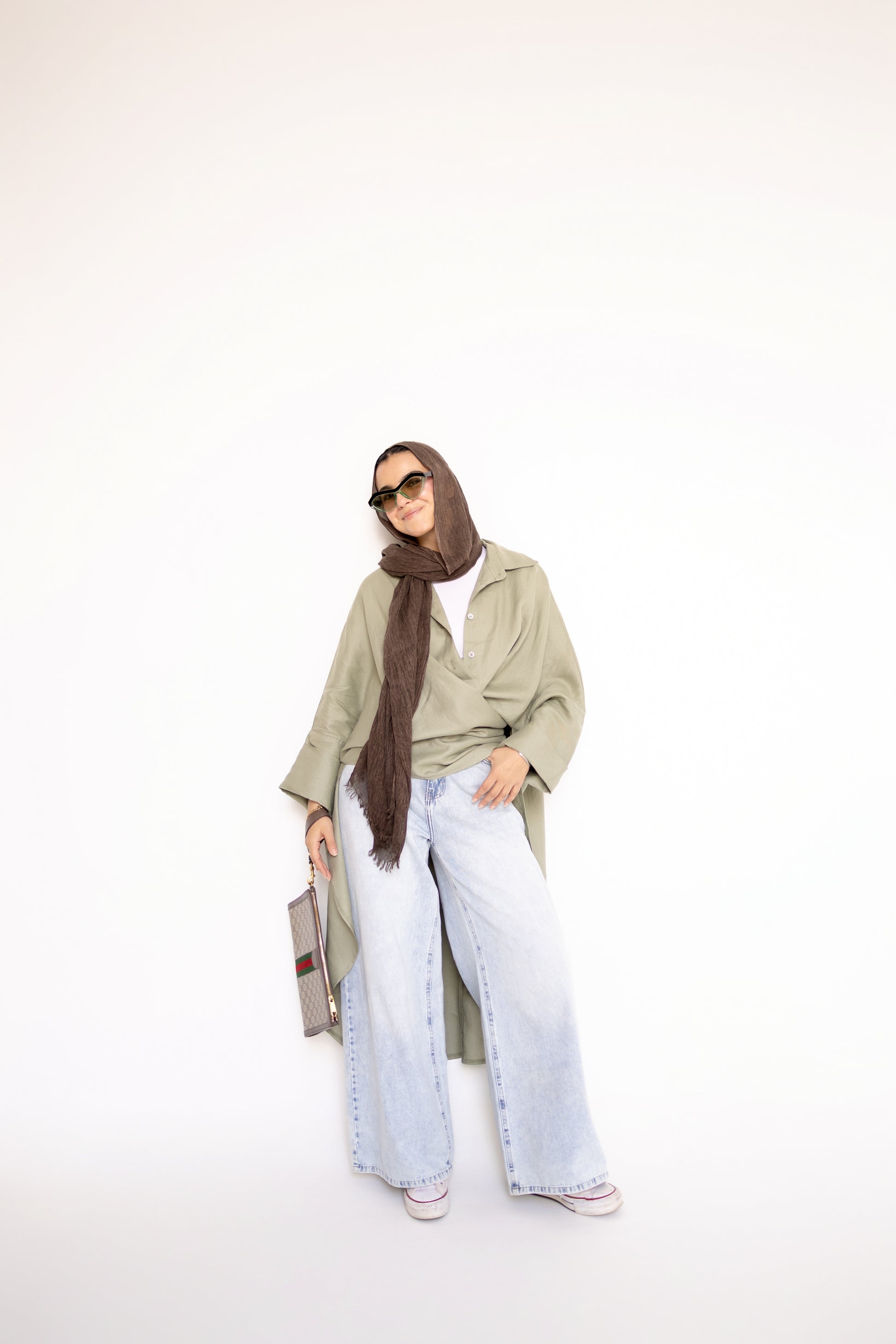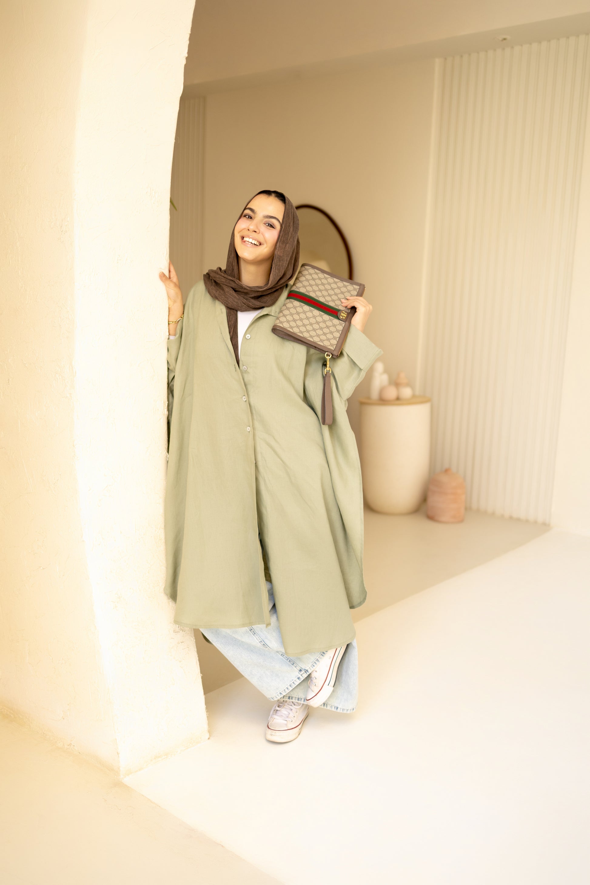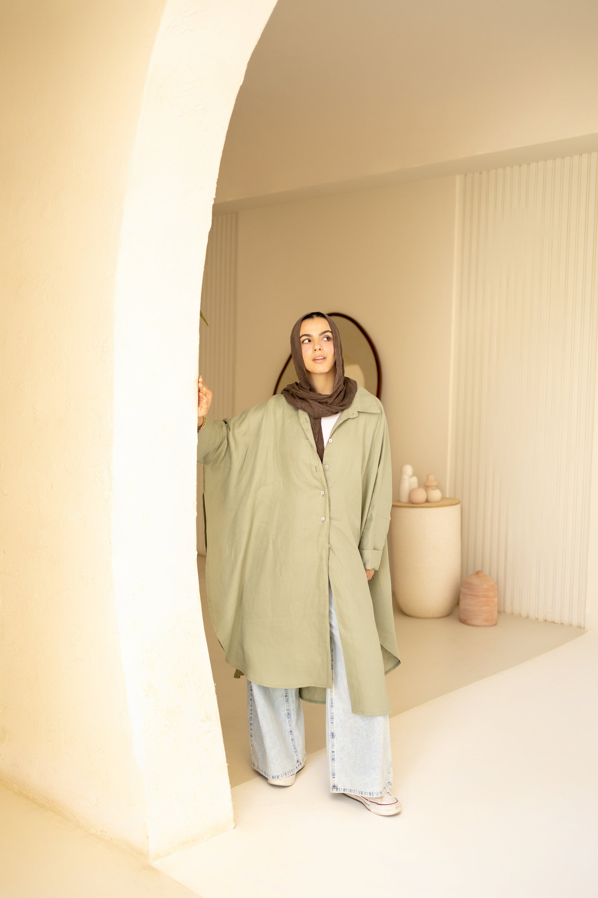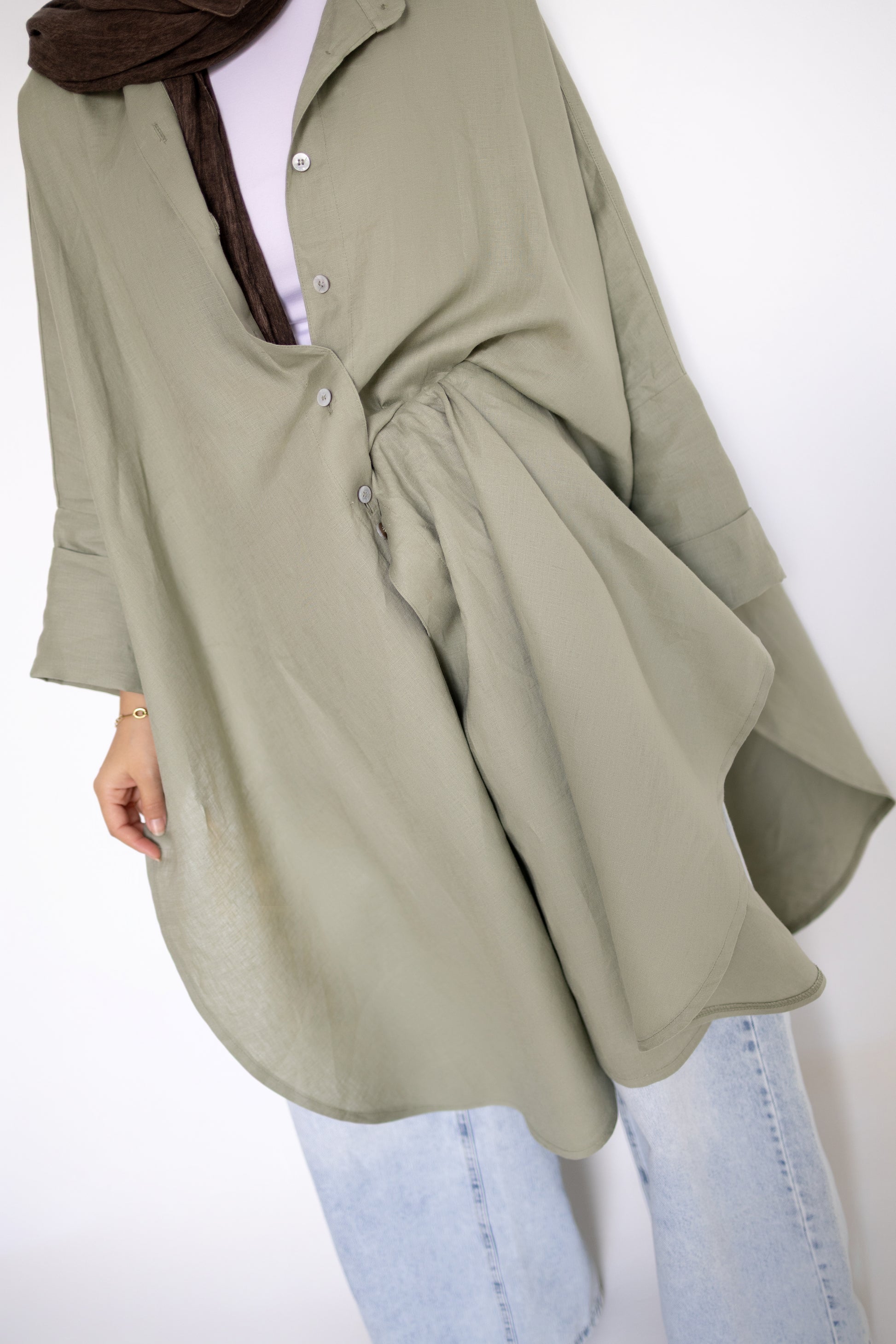 Flowy Oversized Linen Shirt in Olive