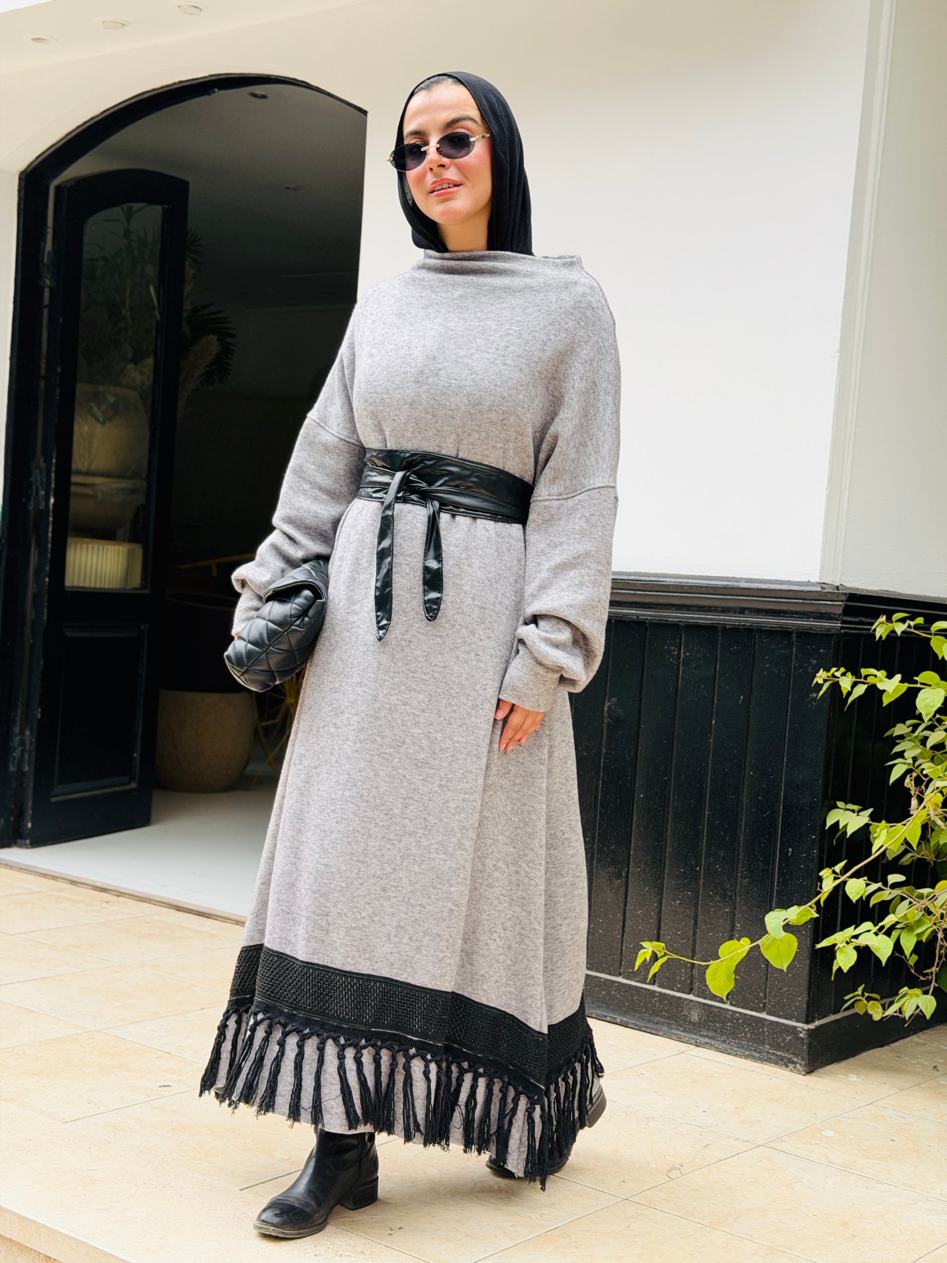 Fringes Soft Wool Dress in Grey