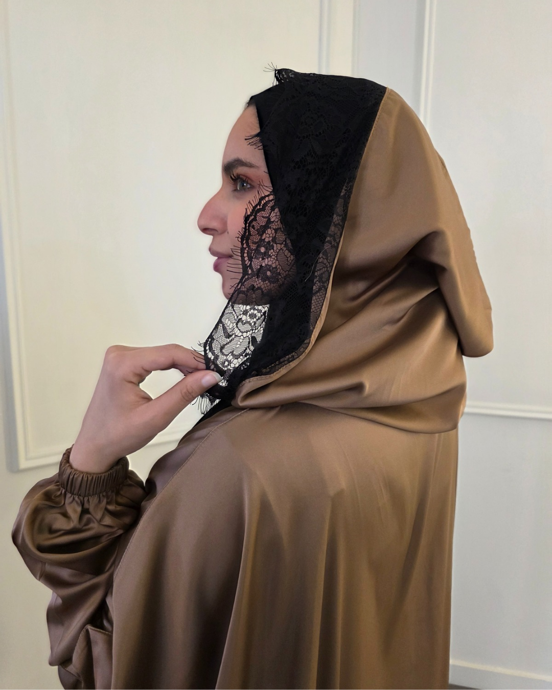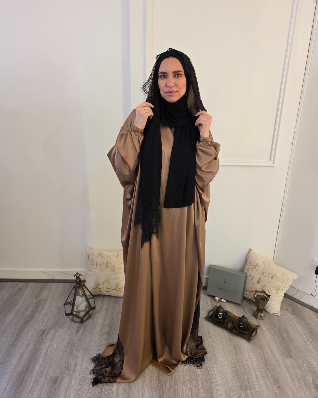 A lightweight, flowing Isdal designed for comfort and grace, with a cotton lycra scarf. Comes in a refined gift box, perfect for special occasions.